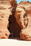 Für den Besuch des Lower Antelope Canyon löst man am Parkplatz ein Ticket und ein Indianer führt einen die 50 Meter zum Eingang in den Slot Canyon. Für Behinderte und stark beleibte ist hier Schluss. Der Reiz der Wanderung in dem rund 800 m langen Canyon in atemberaubenden Rottönen wird durch extrem enge Passagen und leichte Kletterpartien gesteigert. Am Ende kann der Canyon durch eine Stahlleiter auf die Oberfläche verlassen werden oder man geht, den sicherlich beschwerlicheren, aber schöneren Weg wieder innerhalb des Canyons zurück.